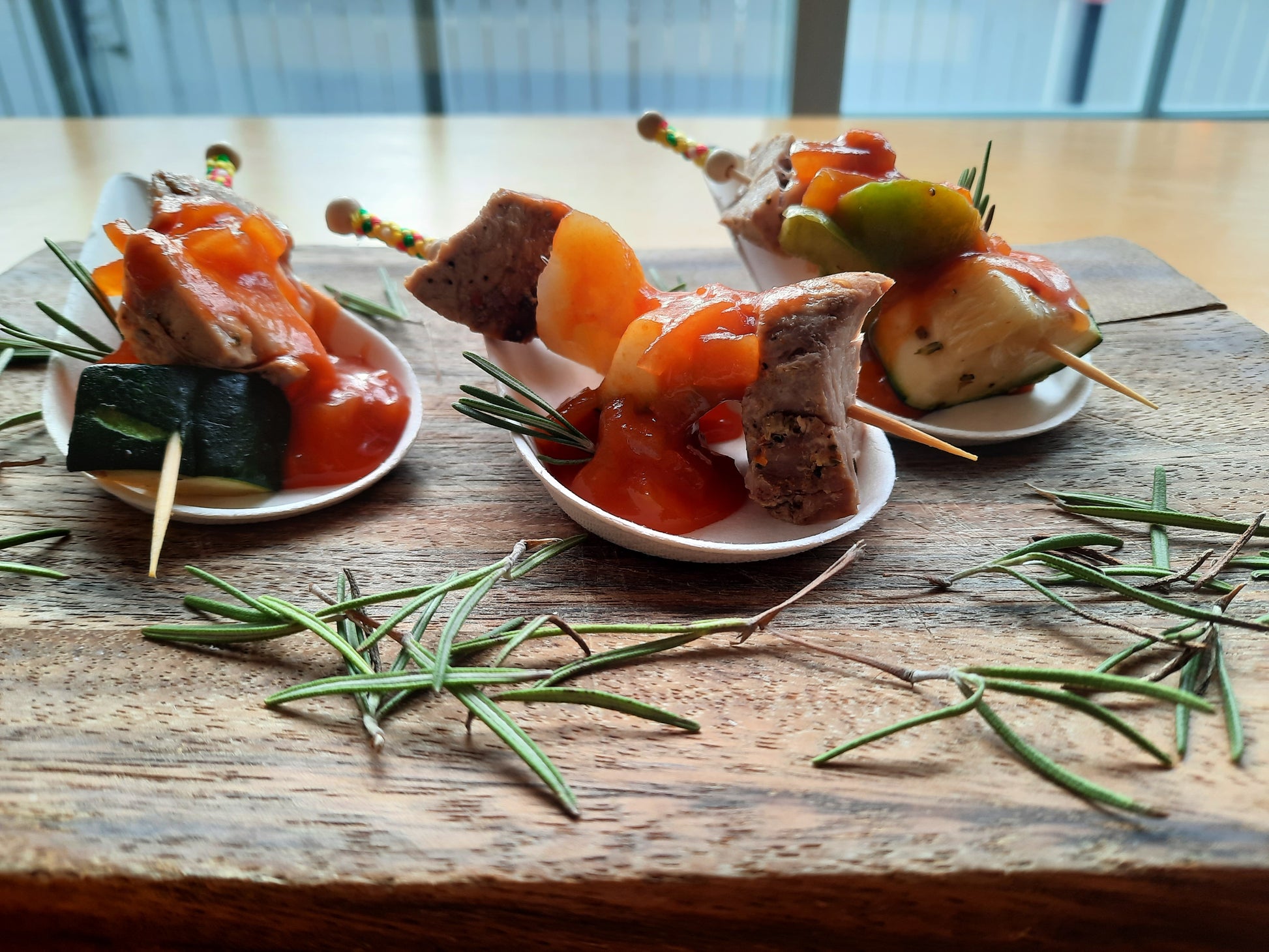 Bouchées chaudes | Brochettes de porc hawaïenne aigre-douce