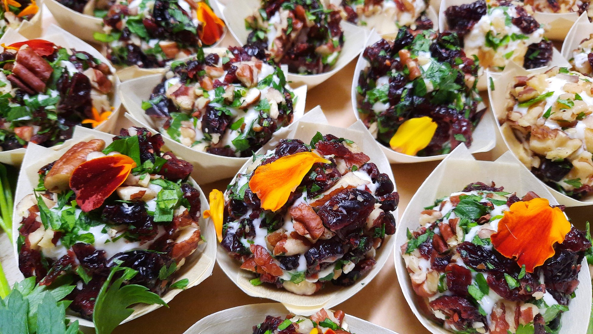 Bouchées froides | Truffle à la mousse de fromage au miel, pacanes, canneberges et persil