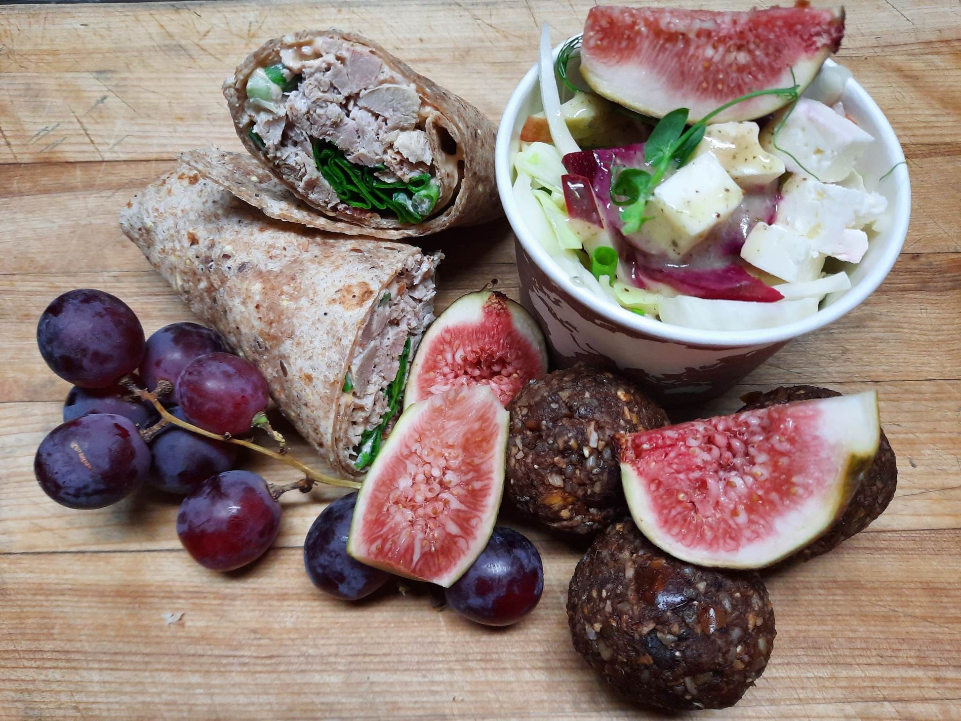 - 1 wrap ou ciabatta (voir les choix de sandwich)